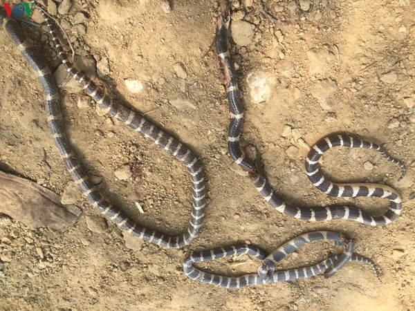 VOVVN - VOV.VN - Trong lúc dọn vườn để trồng rau thì ông Lý ở Hà Tĩnh hốt hoảng phát hiện ổ rắn cạp nia tại nhà.