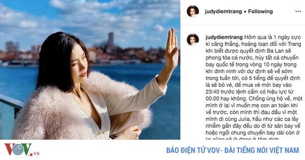 VOVVN - VOV.VN - Á hậu Diễm Trang quyết định ở lại Ba Lan khi nước này công bố lệnh phong tỏa do dịch Covid-19.