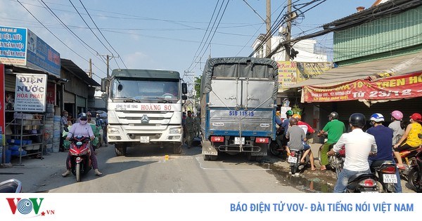 VOVVN - VOV.VN - Bất cẩn trong lúc vượt, nam thanh niên chạy xe máy phanh gấp dẫn đến trượt ngã, phương tiện chui gầm xe bồn.