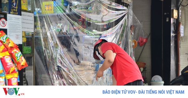 VOVVN - VOV.VN - Nhiều quán ăn, cửa hàng kinh doanh chuyển sang chỉ bán đồ mang đi. Các cửa hàng tạp hóa, nhà thuốc căng bạt nilon để hạn chế tiếp xúc khi buôn bán.