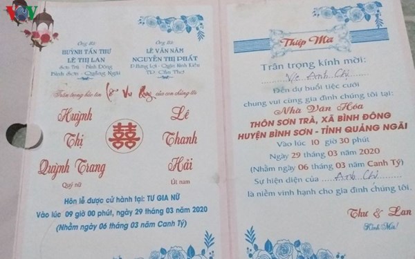 VOVVN - VOV.VN - Một gia đình ở Quảng Ngãi tiếp tục tạm hoãn tổ chức đám cưới cho con gái lần thứ hai để phòng Covid-19 lây lan trong cộng đồng.