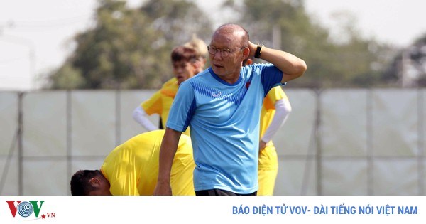 VOVVN - VOV.VN - HLV Park Hang Seo hướng dẫn Tiến Dụng đỡ bóng, rê bóng trên sân tập của U23 Việt Nam sáng 11/1.
