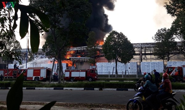 VOVVN - VOV.VN- Sau gần 3 giờ xảy ra hỏa hoạn, đám cháy tại nhà xưởng Công ty TNHH Indochine Foamtech (tại khu công nghiệp Mỹ Phước 3) đã được dập tắt hoàn toàn.