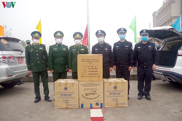 VOVVN - VOV.VN -Đồn biên phòng Móng Cái (Quảng Ninh) trao tặng 10.000 khẩu trang y tế cho lực lượng biên phòng Đông Hưng (Trung Quốc).