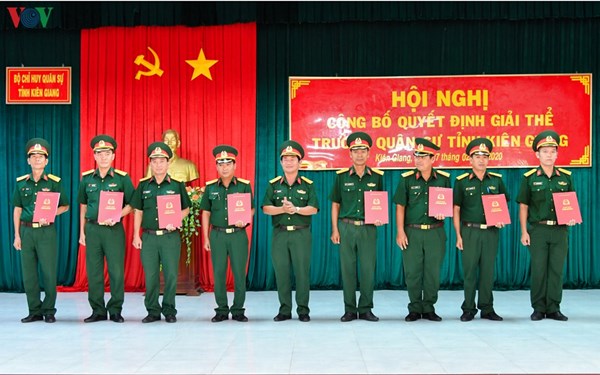VOVVN - VOV.VN - Bộ CHQS tỉnh Kiên Giang vừa công bố Quyết định của Bộ Quốc phòng về việc giải thể Trường Quân sự tỉnh Kiên Giang.