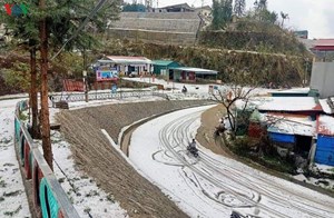 Ảnh: Mưa đá trắng như tuyết phủ kín mặt đất ở Lai Châu