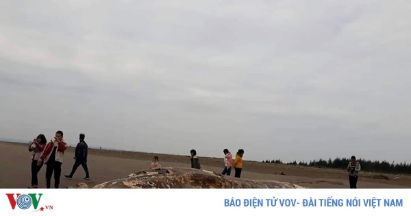 VOVVN - VOV.VN -Người dân huyện Kim Sơn, Ninh Bình bất ngờ phát hiện xác cá voi dài khoảng 13m, nặng gần 10 tấn trôi dạt vào bờ ngay ngày mùng 3 Tết.