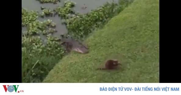 VOVVN - VOV.VN - Chú gấu mèo đến gần mép nước mà không hề hay biết sự xuất hiện của cá sấu và suýt chút nữa đã trở thành bữa tối của kẻ săn mồi.