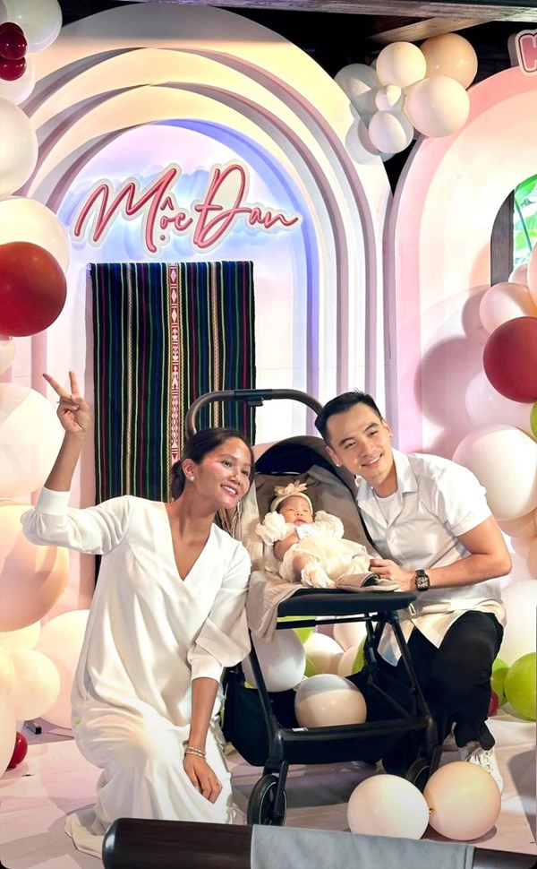 VOVVN - VOV.VN - Sao Việt 20/10: Hoa hậu H’Hen Niê dùng vải thổ cẩm trang trí tiệc đầy tháng con gái, nhắc con nhớ cội nguồn Ê Đê. Buổi tiệc ấm cúng có khoảng 50 khách...