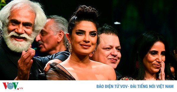 VOVVN - VOV.VN - Hoa hậu Priyanka Chopra trang điểm sắc sảo, mặc đầm đen quý phái khoe vai trần gợi cảm đi xem show thời trang ở Ấn Độ ngày 23/2 vừa qua.