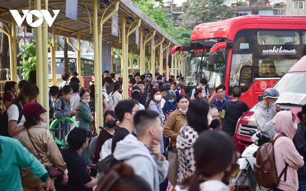 VOVVN - VOV.VN - Thousands of people have flocked to bus stations in the capital on the final working day to queue up for tickets to go back to their hometowns over the five-day holiday period from...
