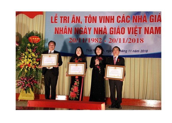 VOV4 - VOV4.VN - Sáng 20/11, Phó Chủ tịch nước Đặng Thị Ngọc Thịnh dự lễ kỷ niệm Ngày Nhà giáo Việt Nam và trao Huân chương Lao động hạng Nhì và hạng Ba cho các...