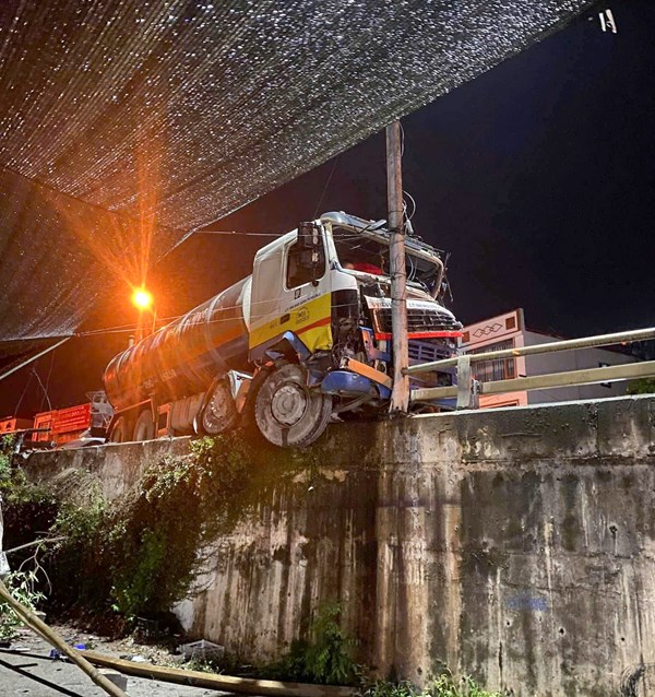 VOVVN - VOV.VN - Sau cú va chạm mạnh, 2 xe bồn bị móp méo, biến dạng phần đầu. Tuyến Quốc lộ 18 (đoạn qua Quế Võ, Bắc Ninh) ùn tắc cục bộ.