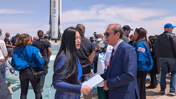 VOVVN - VOV.VN - Ngày 14/4, tại vùng tây Texas, Hoa Kỳ, Công ty Blue Origin do tỷ phú Jeff Bezos sáng lập đã tổ chức chuyến bay của tổ hợp tàu - tên lửa New Shepard với phi hành đoàn sáu người...