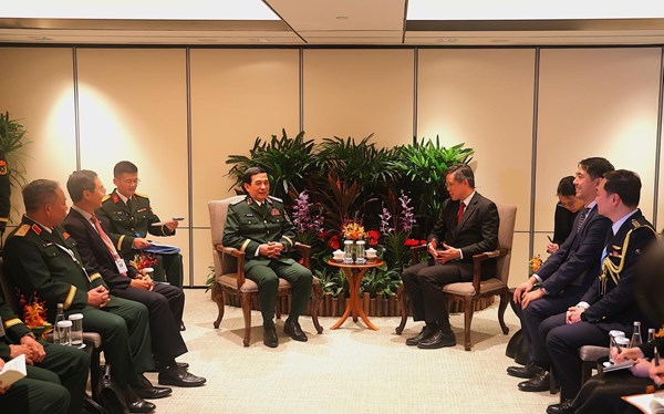 VOVVN - VOV.VN - Ngày 31/5, bên lề Đối thoại Shangri-La lần thứ 22 tại Singapore, Đại tướng Phan Văn Giang, Ủy viên Bộ Chính trị, Bộ trưởng Bộ Quốc phòng đã có cuộc gặp song phương với...