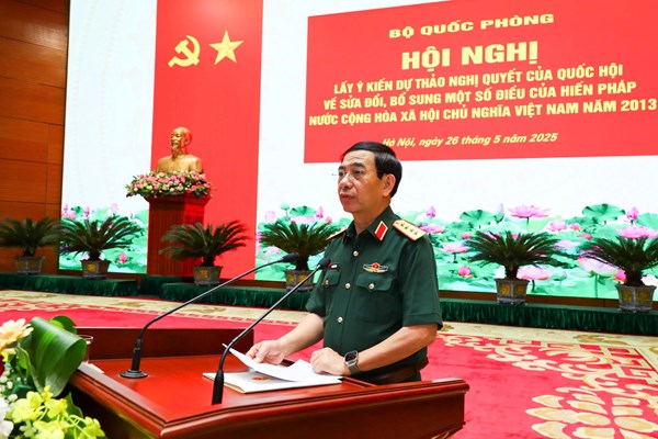 VOVVN - VOV.VN - Sáng 26/5, tại Hà Nội, Bộ Quốc phòng tổ chức Hội nghị lấy ý kiến về dự thảo Nghị quyết sửa đổi, bổ sung một số điều của Hiến pháp năm 2013, dưới sự...