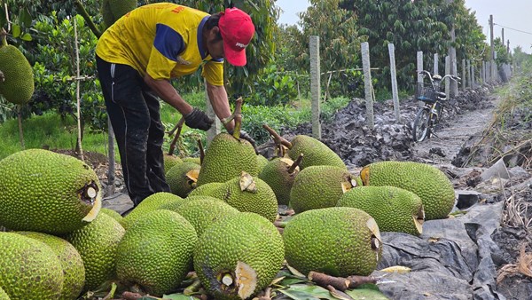 VOVVN - VOV.VN - Sau khi trái sầu riêng rớt giá, giá trái mít tại tỉnh Tiền Giang cũng giảm theo, nhà vườn trồng loại cây ăn trái này không có lãi.
