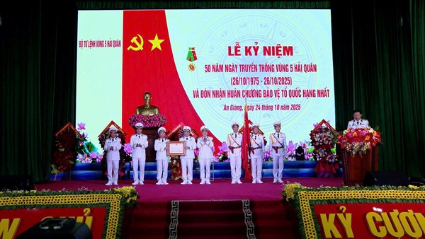 VOVVN - VOV.VN - Sáng 24/10, tại đặc khu Phú Quốc, tỉnh An Giang, Bộ Tư lệnh Vùng 5 Hải quân tổ chức Lễ kỷ niệm 50 năm ngày truyền thống và vinh dự đón nhận Huân...