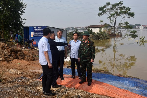 VOVVN - VOV.VN - Chiều 11/10, Chủ tịch UBND Thành phố Hà Nội Trần Sỹ Thanh đã trực tiếp kiểm tra công tác ứng phó, khắc phục hậu quả mưa lũ trên sông Cầu, địa bàn xã...