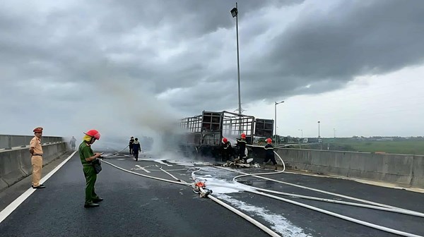 VOVVN - VOV.VN - Chiều 23/10, trên cao tốc Đà Nẵng – Quảng Ngãi, xảy ra vụ cháy xe tải, rất may không thiệt hại về người.