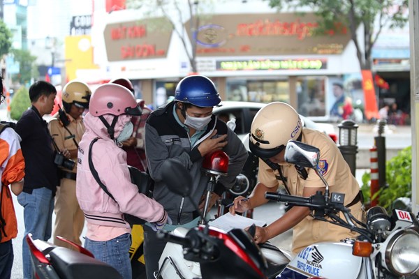 VOVVN - VOV.VN - Trong ngày đầu áp dụng Nghị định 168, các đội cảnh sát giao thông thuộc Công an TP.HCM đã lập biên bản một số trường hợp vượt đèn đỏ, chạy ngược chiều... với...