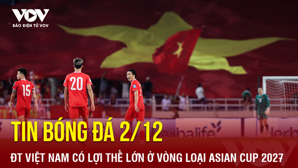 VOVVN - VOV.VN - Tin bóng đá 2/12, theo thông báo mới nhất của LĐBĐ châu Á (AFC), ĐT Việt Nam có lợi thế lớn ở vòng loại Asian Cup 2027 khi được xếp vào nhóm hạt...