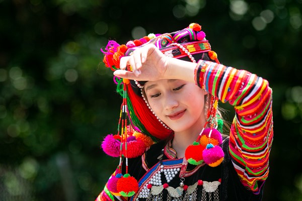 VOVVN - VOV.VN - Là một trong những loại trang phục truyền thống cầu kỳ nhất của người đồng bào thiểu số vùng cao, trang phục truyền thống của phụ nữ Hà Nhì Hoa sặc sỡ, tươi...