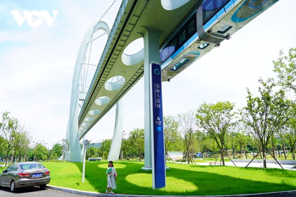 VOVVN - VOV.VN - Sau hơn 4 tháng thử nghiệm, con tàu một ray treo ngược trên không đầu tiên của Trung Quốc đã chính thức được đưa vào vận hành tại Khu công nghệ cao Đông...