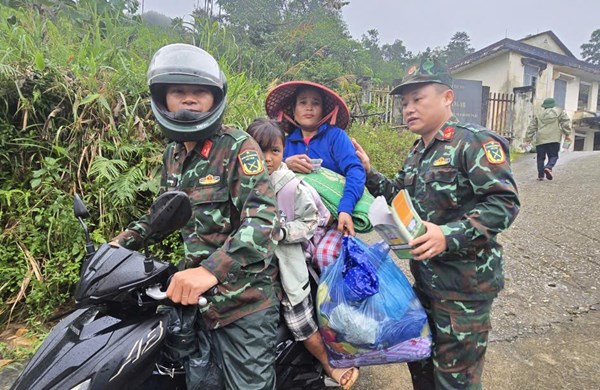Cán bộ xã vượt mưa lũ lớn đến với dân