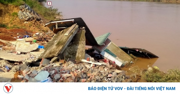 VOVVN - VOV.VN - Tối 16/10, một đoạn bờ sông Thạch Hãn đoạn qua thôn Như Lệ, xã Hải Lệ, thị xã Quảng Trị, tỉnh Quảng Trị bất ngờ sạt lở, một nhà dân bị đổ sập...