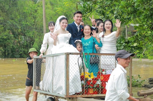VOVVN - VOV.VN - Trước nguy cơ phải hoãn cưới vì bão lũ, gia đình hai bên vẫn quyết định tổ chức. Sáng 30/9, nước lũ dâng nhanh, buộc cô dâu Phạm Thị Trang và chú rể...