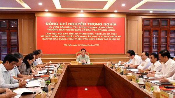VOVVN - VOV.VN - Sáng nay, tại Hà Nội, Ủy viên Bộ chính trị, Bí thư Trung ương Đảng, Trưởng Ban Tuyên giáo và Dân vận Trung ương Nguyễn Trọng Nghĩa làm việc với các tỉnh Thanh...