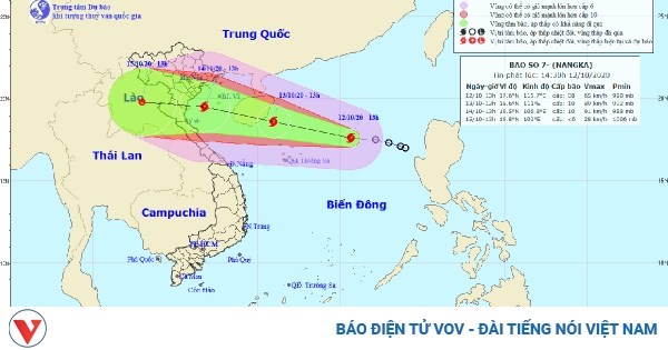 VOVVN - VOV.VN - Chiều 12/10, áp thấp nhiệt đới trên khu vực Bắc Biển Đông đã mạnh lên thành bão, cơn bão số 7 trong năm 2020 và có tên quốc tế là NANGKA.