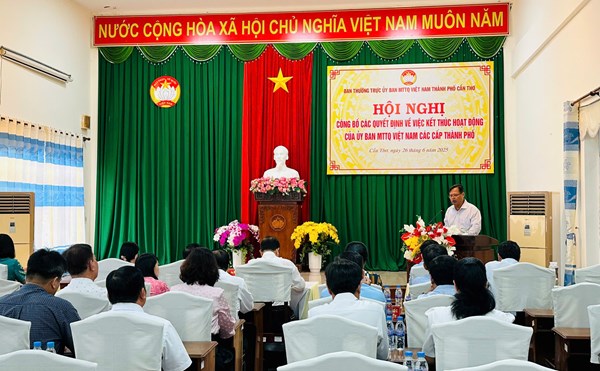 VOVVN - VOV.VN - Ngày 26/6, Ban Thường trực Ủy ban MTTQ Việt Nam thành phố Cần Thơ tổ chức Hội nghị công bố các quyết định kết thúc hoạt động của Ủy ban MTTQ Việt Nam...