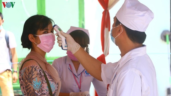 VOVVN - VOV.VN -Khách mời tham dự đều được đo thân nhiệt, riêng chú rể, khách mời người nước ngoài đã được kiểm tra lý lịch di chuyển của từng người.