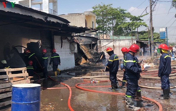 VOVVN - VOV.VN - Một vụ cháy xưởng sản xuất đồ gỗ gia dụng rộng hàng trăm m2 khiến nhiều tài sản bị thiêu rụi tại TP HCM.