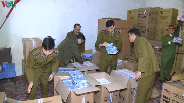 VOVVN - VOV.VN - Các cơ quan chức năng tỉnh Lào Cai tạm giữ gần 150.000 chiếc khẩu trang có dấu hiệu vi phạm.