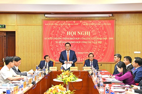 VOVVN - VOV.VN - Chiều nay (17/4), tại Hà Nội diễn ra hội nghị ký kết “Chương trình phối hợp công tác giữa Ban Tuyên giáo và Dân vận Trung ương với Đảng ủy Bộ Dân tộc...