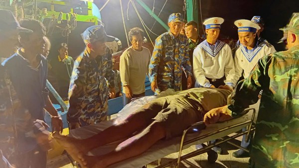 VOVVN - VOV.VN - Tối 8/4, Bệnh xá đảo Trường Sa, Lữ đoàn 146, Vùng 4 Hải quân tiếp nhận và cấp cứu cho ngư dân tàu cá tỉnh Bình Định