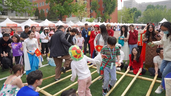 VOVVN - VOV.VN - Thông qua biểu diễn áo dài, âm nhạc..., hàng trăm du học sinh Việt Nam tại Đại học Ngôn ngữ Bắc Kinh, Trung Quốc đã mang những nét văn hóa đặc trưng của...