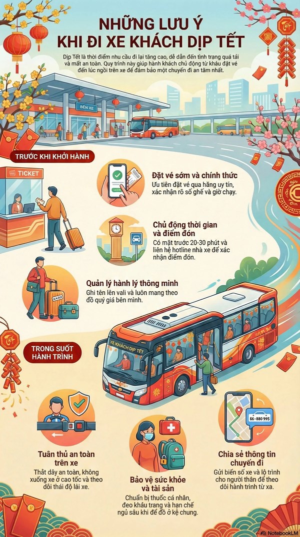 VOVVN - VOV.VN - Dịp Tết là cao điểm đi lại: xe đông, dễ quá tải, dễ phát sinh trễ giờ và rủi ro an toàn. Bạn nên chuẩn bị kỹ các điểm sau: