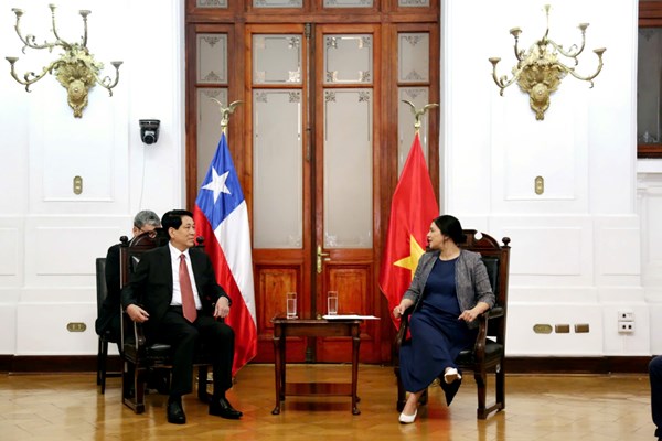 VOVVN - VOV.VN - Sáng 11/11, theo giờ địa phương, trong khuôn khổ chuyến thăm chính thức Cộng hòa Chile, tại trụ sở Quốc hội ở Santiago, Chủ tịch nước Lương Cường đã hội kiến Chủ tịch...