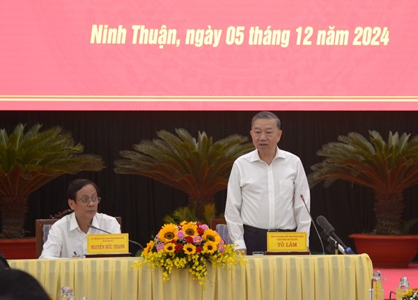 Tổng Bí thư Tô Lâm chủ trì buổi làm việc với tỉnh Ninh Thuận