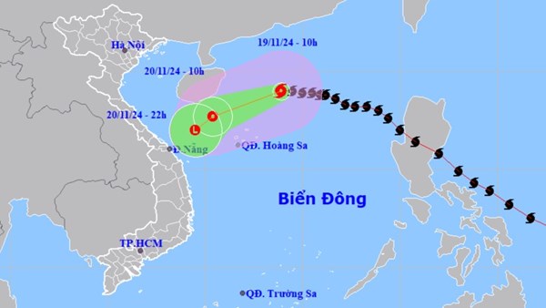 VOVVN - VOV.VN - 10 giờ ngày 19/11, vị trí tâm bão ở vào khoảng 19,0 độ Vĩ Bắc; 113,9 độ Kinh Đông, trên khu vực Bắc Biển Đông, cách quần đảo Hoàng Sa khoảng 300km về...