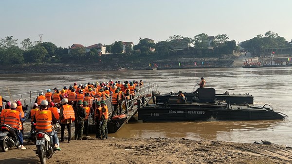 Chưa bắc được cầu phao, phà dã chiến Phong Châu hoạt động hết công suất