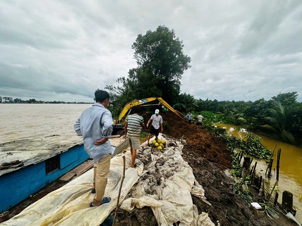 Bến Tre khẩn trương khắc phục đoạn đê bị vỡ lần 2