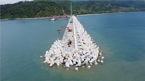 VOV1 - Chủ đầu tư và các nhà thầu xây dựng Dự án Bến cảng Liên Chiểu - Phần cơ sở hạ tầng dung chung (thành phố Đà Nẵng) vừa tiến hành khóa đê kè chắn sóng...