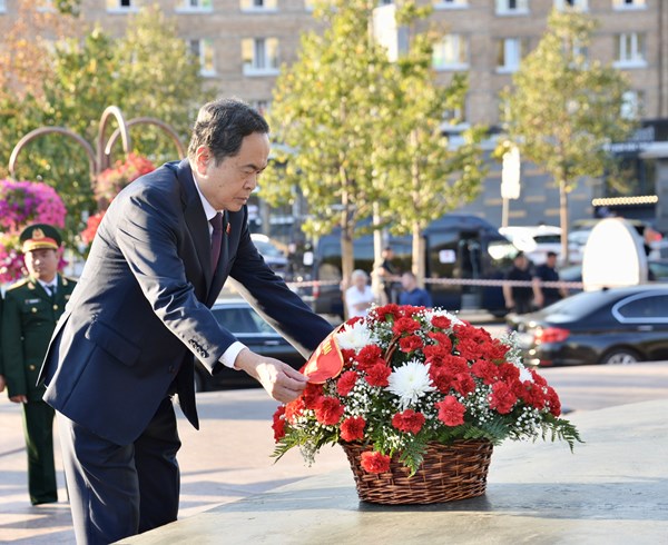 Chủ tịch Quốc hội Trần Thanh Mẫn dâng hoa tại Tượng đài Chủ tịch Hồ Chí Minh ở Moscow