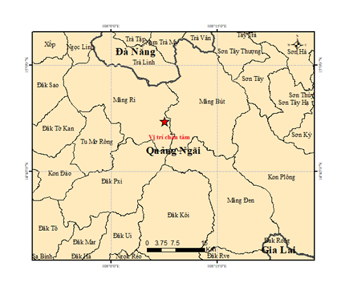 VOVVN - VOV.VN - Quảng Ngãi vừa ghi nhận 2 trận động đất tại xã Măng Ri, độ lớn 3.6 và 2.6 độ, không gây rủi ro thiên tai.