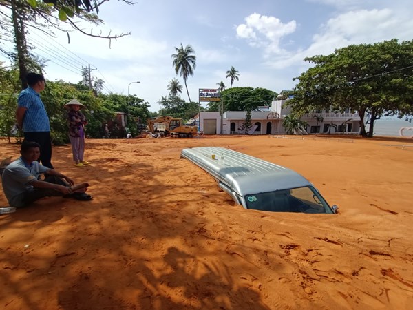 VOVVN - VOV.VN - Mưa lớn kéo dài trong đêm qua đến rạng sáng 21/5 khiến một lượng lớn cát đỏ từ trên đồi cao tràn xuống vùi lấp đường, nhà dân tại nhiều khu vực ở...